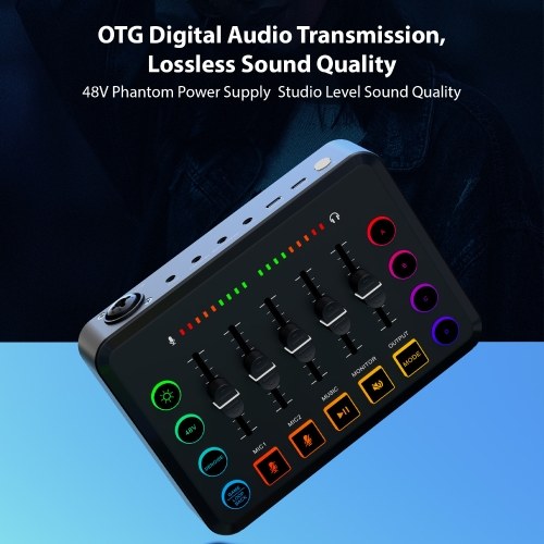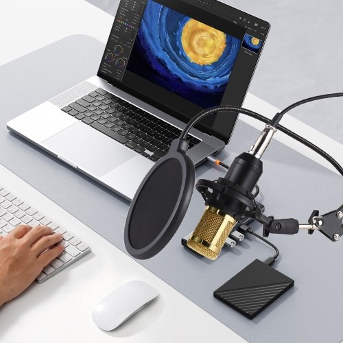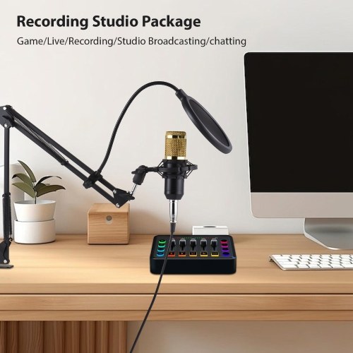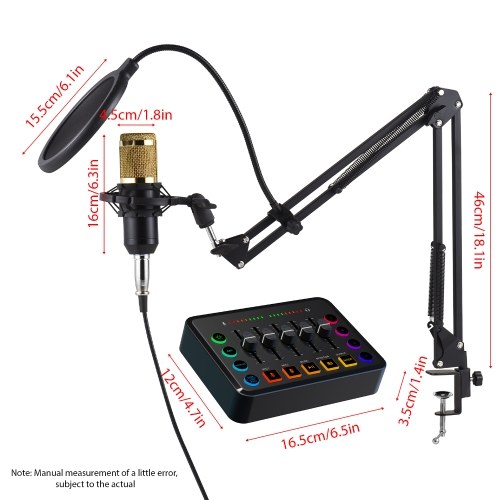 【Comprehensive Package】: The package includes 1 live sound card, 1 microphone, 1 adjustable suspension scissor arm stand, 1 shock mount, 1 spray prevention filter net, 1 anti-wind foam cap, 1 USB cable, 1 XLR to 3.5mm microphone cable, 1 OTC cable, 1 audio cable, and 1 sound card manual. Everything you need for a professional podcasting setup is included.
