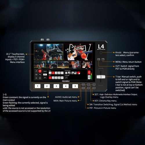 【Easy Operation】Applied with flexible and intuitive control panel, Easy to use and quick to get started. This video mixer is very easy to operate, and you can use full touch or buttons to control it, even beginners can easily handle it.