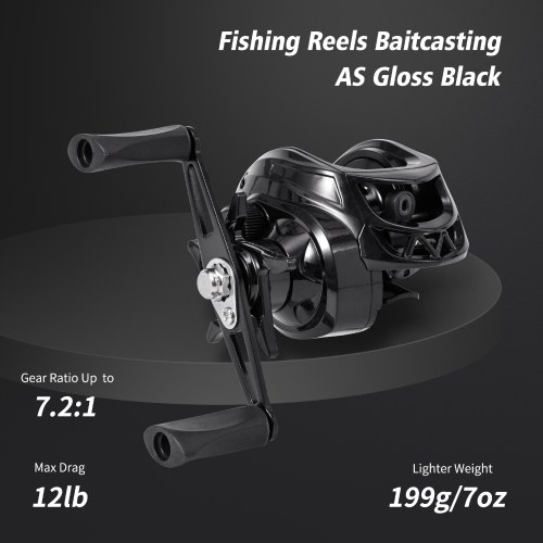 Fishing Reel: High-speed gear ratio of 7.2:1, stainless steel main gear shaft, and brass pinion gear for efficient fishing.