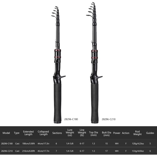 Rod Length: 180cm/5.90ft or 210cm/6.89ft