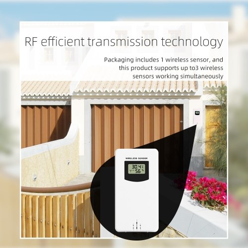 【Wireless Outdoor Sensor】Wall mount or table stand, 433.92MHZ RF transmitting frequency, 60 meters transmission range in an open area. Up to 3 wireless outdoor sensors can be connected(package include 1 sensor)