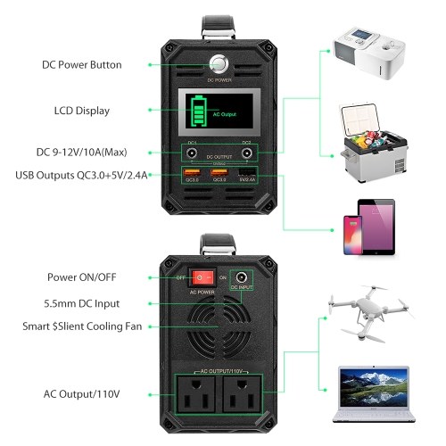 【Wide Application】In addition to provide enough power for small end users, portable power stations also can be used for medical care. Perfect for smartphone/tablet/laptop/camera/light/drones/fans or or other small power appliances.
