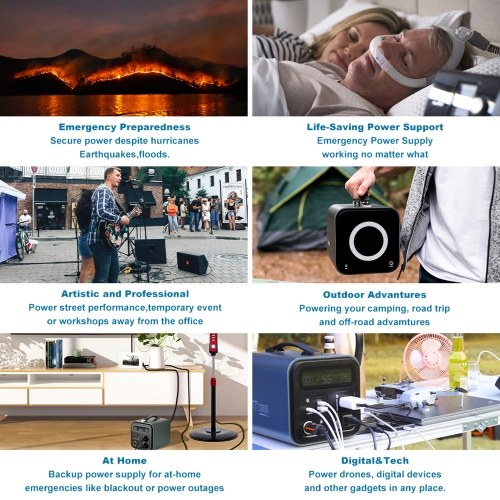 【Wide Application】Portable power station can provide enough power for small end users, such as: smartphone/tablet/laptop/camera/light/drones/fans/in-car appliances/medical care/mini-Refrigerator or other small power appliances.