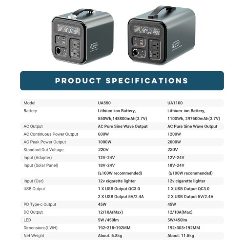 【Multiple Safety Protection】UA1100 solar generator have reliable BMS to support multi-protection to avoid damage caused by over load/over current/over temperature/over charge.