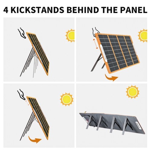 【Foldable & Adjustable Stand Design】Foldable solar charger with handle is portable and lightweight for you to carry, hang and remove easily when you do the outdoor activities. Come with 4 kickstands, adjust the direction of the solar panel to enabling to get the max sunlight.