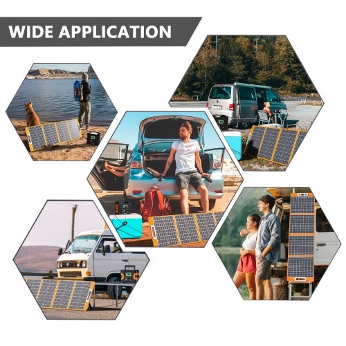 【Wide Compatibility With Most Solar Generators】18V/100W portable solar panel equipped with 4 different size of connectors(8mm/5.5*2.5mm/3.5*1.35mm/6.3*3.0mm) and DC Cable(5.5x2.1mm) for charging Flashfish 300Wh. DC output foldable solar panel is also compatible with most portable power station on the market.