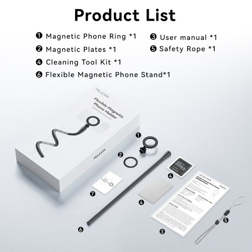 【Magnetic Phone Stand】The flexible phone stand is equipped with a magnetic phone holder that has built-in 16 strong magnets for secure phone attachement.
