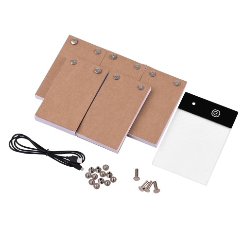【Start Your Own Cartoon】: Mini led light pad is used for drawing and tracing, comes with 5 flip books(300 sheets) and 2 spare sizes of binding screws to create your own animation book. By flipping the page with your thumb, you can see the dynamic effect, which is very interesting!
