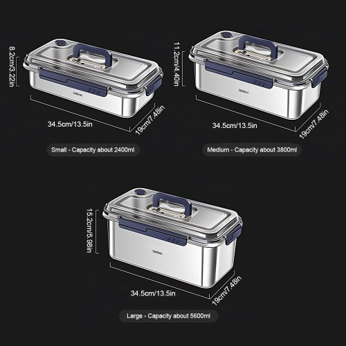 【Large Capacity and Widely Used】Deepened and thickened large capacity storage box, with 3 capacity for option: 2.4L/3.8L/5.6L(84.5oz/133.7oz/189.3oz). Enough for large family, restaurant, school for storage fruit, veges in kitchen and fridge.