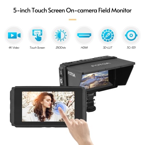 5-inch Touch Screen Monitor: The field monitor features 5-inch touchable screen with 2500nits and 1000:1 contrast, ultra-bright to ensure easy reading even under the sun.
