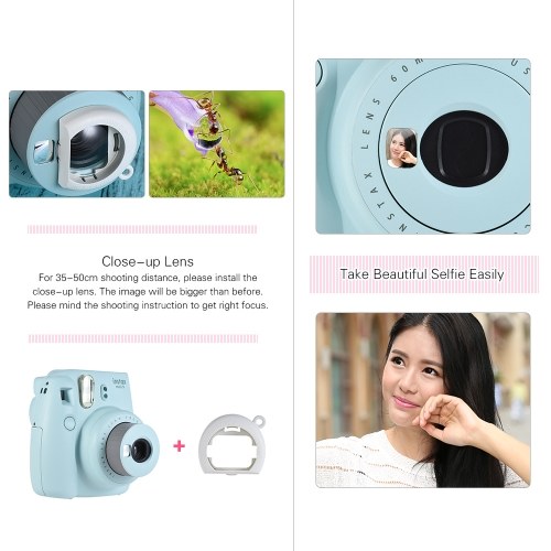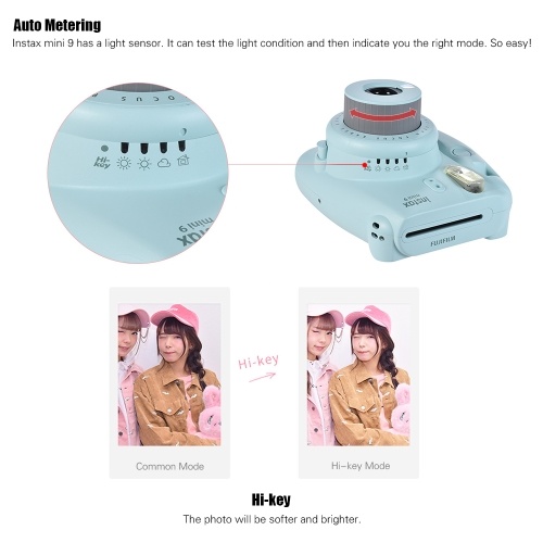 Fujifilm Instax Mini 9 camera is a upgraded version for Instax Mini 8. It has a mini mirror to help you take selfie easier. The Adorable outlook and simply operation make it a perfect gift for friends and family on special days, record happy moment and display them instantly. Sent with 2pcs AA batteries, and it can last for around 100 shots.
