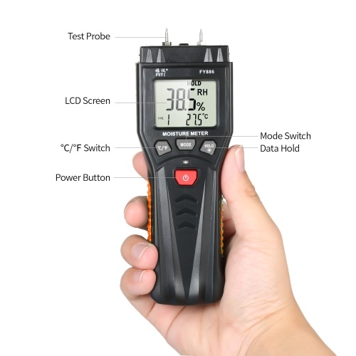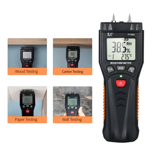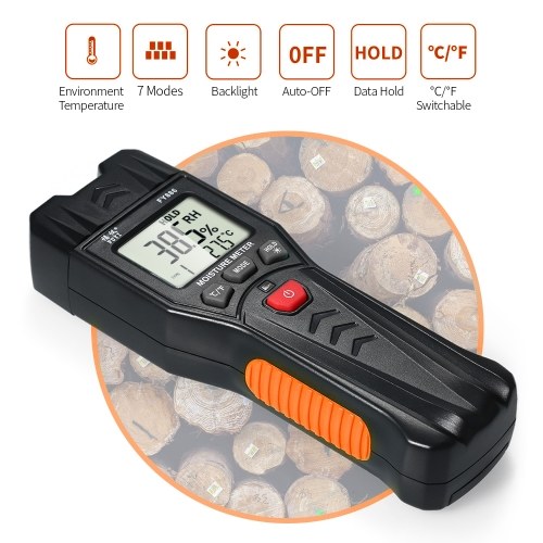 This Wood Moisture Tester is a professional moisture meter used to measure the moisture level in sawn timber (also paper and cardboard) and hardened materials (mortar, concrete and plaster) as well as the environment temperature.