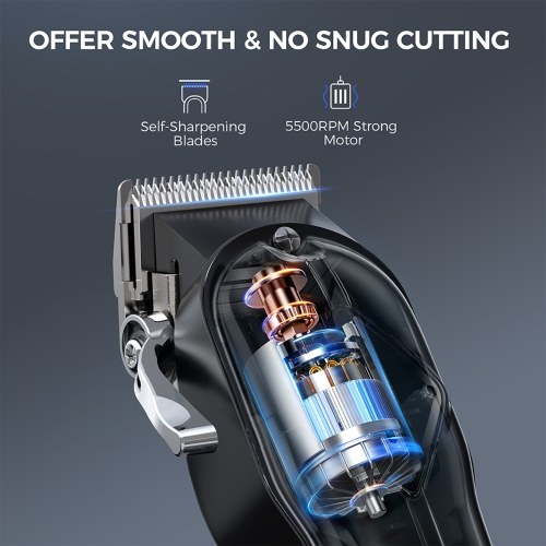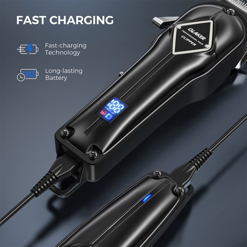 HEAVY DUTY MOTOR & SELF-SHARPENING BLADES - Glaker electric cordless hair clippers and trimmer for men are constructed of all metal body for a luxury look, feel and grip; its heavy duty motor ensures 5500rpm & causes noise below 60 db, and the self-sharpening stainsteel blades can offer an effective haircut with no snagging or pulling.