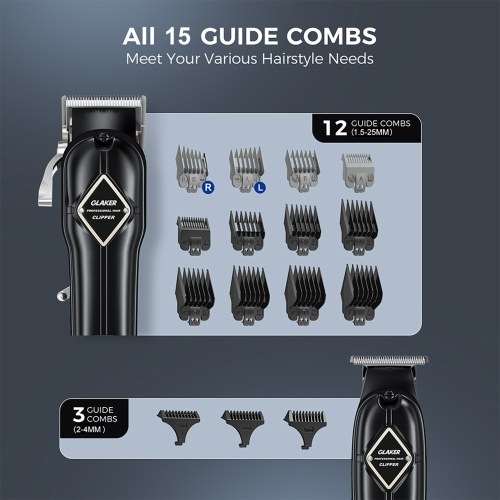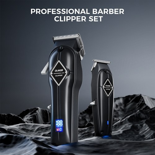 HAIR CLIPPING & TRIMMING COMBO - GLAKER cordless barber kit features a powerful hair clippers and a T-blade outlining trimmer for achieving your desired styles with multiple grooming lengths, well suitable for professional barbers as well as home use.