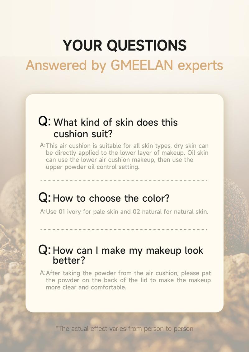 Warna kulit: kuning langsat,sy ambik kod Ivory. bagus tekstur baby cushion ni, wrna pun x putih sgt, muka x jd kelabu. bedak sy guna brush, cpt rata. mmg best la baby cushion ni. sy pakai jam 7 am, jam 2 pm, bedak masi kekal d muka, glowing pl tu. love sgt. sy akn repeat order. tq seller