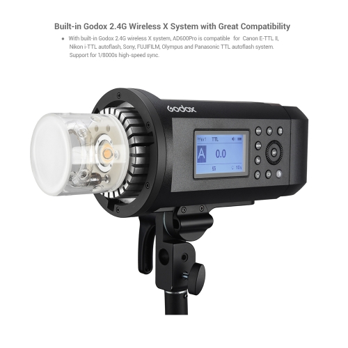 Built-in Godox 2.4G wireless X system, compatible for Canon E-TTL II, Nikon i-TTL, Sony, Olympus, Panasonic, Fujifilm autoflash system.