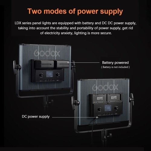 【Dual Power Supply Options】This bi-color LED video light comes with two power supply choices: DC and NP series batteries. You can choose the power supply mode that most appropriately meets your needs.
