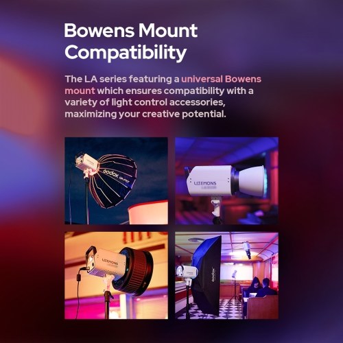 【Bowens Mount Compatibility】Compatible with any Bowens mount light shapers, this RGB photography light works perfectly with the Godox light shaping system and other mainstream modifiers in the market, exploring more light sculpting potential for your production.