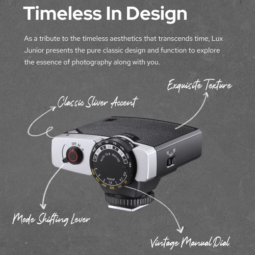 【Timeless In Design】As a tribute to the timeless aesthetics that transcends time, Lux Junior presents the pure classic design and function to explore the essence of photography along with you.