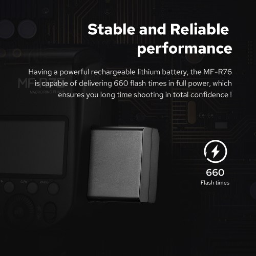 Stable and Reliable Performance: Having a powerful rechargeable lithium battery, the macro ring flash light is capable of delivering 660 flash times in full power, which ensures you long time usage in total confidence. And battery charger is included.