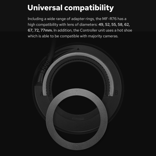 Universal Compatibility: Including several adapter rings, the macro ring light has a high compatibility with lens of diameters: 49mm/52mm/55mm/58mm/62mm/67mm/72mm/77mm. In addition, the controller unit with a hot shoe is compatible with most DSLR cameras on the market.
