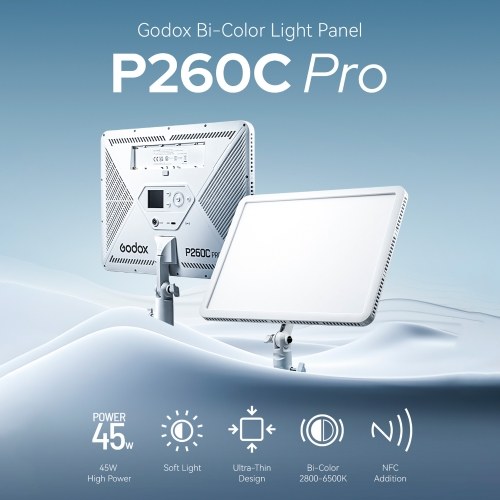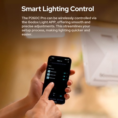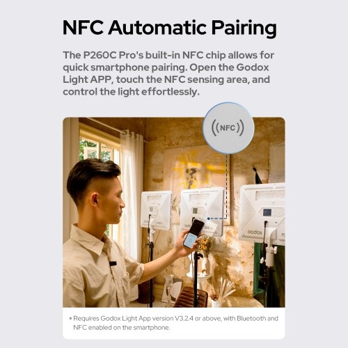 【APP Control & NFC Automatic Pairing 】The P260C Pro can be wirelessly controlled via the Godox Light APP, offering smooth and precise adjustments. Built-in NFC chip allows for quick smartphone pairing. Open the Godox Light APP, touch the NFC sensing area, and control the light effortlessly.