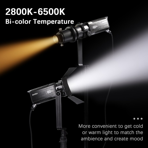 【Power Anywhere & Flexible Remote Control】Comes with a separate controller box, which supports AC adapter and V-mount battery(not included) power supply, suitable for indoor and outdoor use. With built-in BT system, the S60Bi can be remotely controlled by smartphone APP "Godox Light". It also supports RC-A6 remote control(sold separately) and DMX control mode.