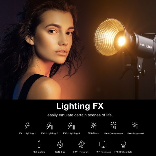 Compact unit with high brightness, Godox SL100Bi works well for small studio lighting. 2800K-6500K bi-color temperature light for basic shooting usage, and 11 built-in lighting effects for more creativity. Bowens mount makes it easier to choose accessories. Want to gain popularity as a live streamer, content creator or commercial producer? Lighting with Godox SL100Bi will be a good start.