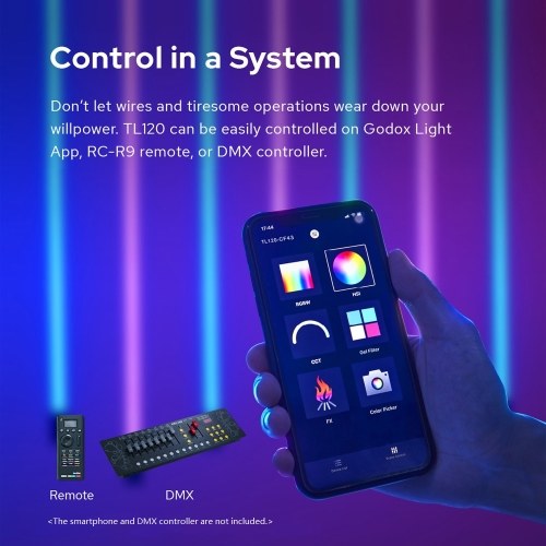 [Multiple Control Ways] Support adjust color temperature, brightness, RGB modes and more through on-board buttons control, RC-R9 remote control (not included), smartphone APP control and DMX control (not included), flexible to use.