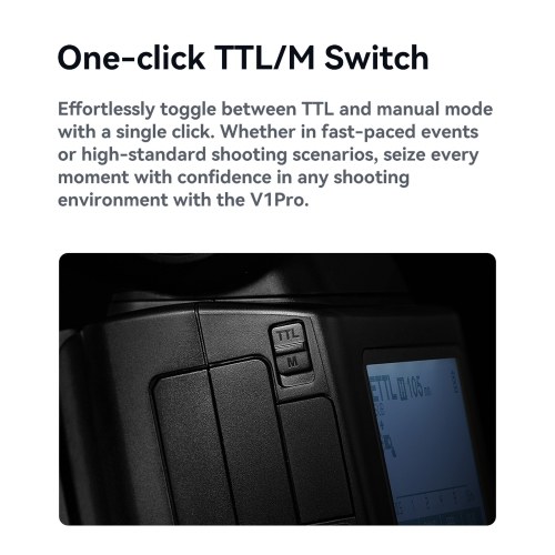 【One-click TTL/M Switch】Effortlessly toggle between TTL and manual mode with a single click.