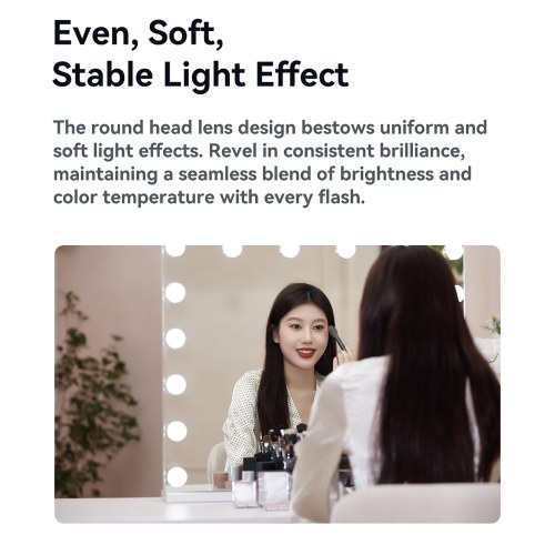 【Soft & Stable Light Effect】The round head lens design bestows uniform and soft light effects. Revel in consistent brilliance, maintaining a seamless blend of brightness and color temperature with every flash.