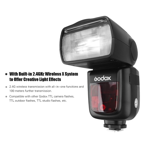 Built-in Godox 2.4G wireless X system offers all-in-one functions and 100-meter further transmission distance. Use in combination with other TTL camera flashes, TTL outdoor flashes, and TTL studio flashes.