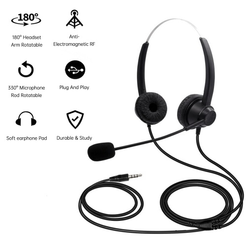 ✅ This dual-ear headset uses 3.5mm plug type, suitable for both computer and mobile phone connecting. The headset arm can rotate 180° and the microphone rod can rotate 330°, allowing you to adjust the angle and position of the headset according to your personal needs.