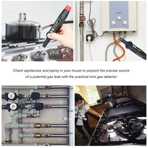 The unit can detect all types of combustible gas like methane, propane, natural gas, etc. As the concentration goes up, the audible alarm beep more frequently and the scale add up. Check appliances and piping in your house to pinpoint the precise source of a potential gas leak with the practical mini gas detector.