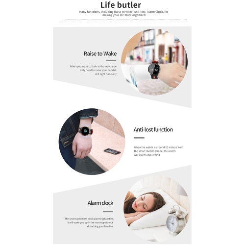 When the watch is around 10 meters from the smart mobile phone, the watch will alarm and remind.