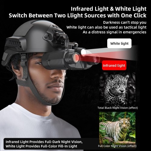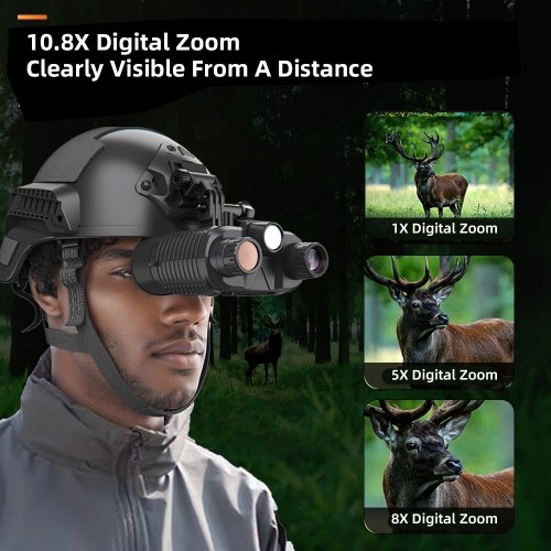 Capture Every Detail: Head-mounted night vision goggles feature an 8X digital zoom, allowing you to bring distant objects into clear focus. Whether you're monitoring or studying nocturnal wildlife, it ensures enhanced visibility and precision.
