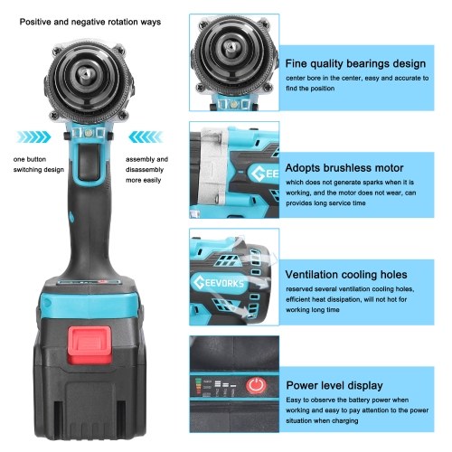 High strength chuck can easily replace drill bits with different functionmetal, and a variety of materials are easy to handle, such as wood, concrete, screw out and etc.