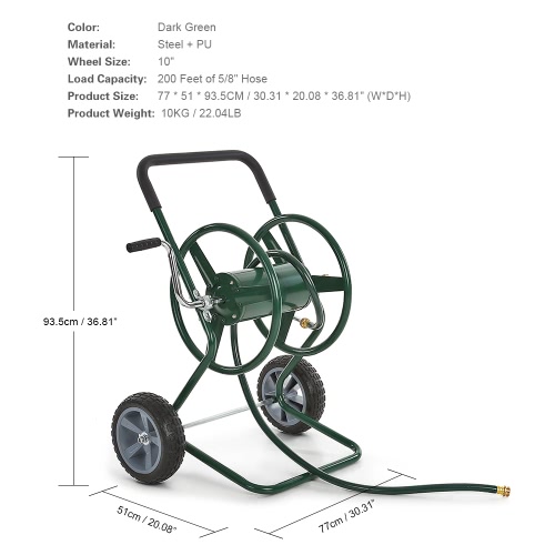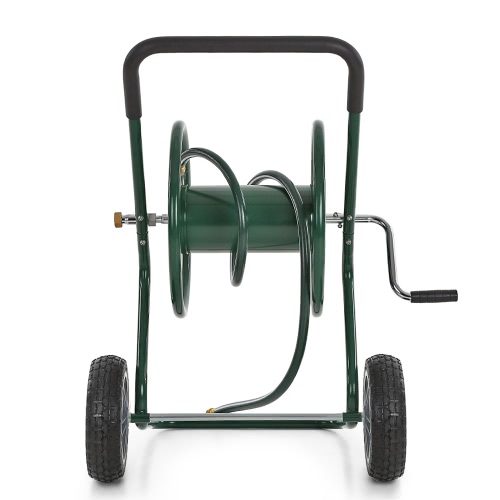 This is an outstandingly strong robust hose reel cart. I bought this hoping it was going to be good as there were no ratings or reviews on it but now I am glad I did. It is extremely easy to rewind hose after use and at a very comfortable level so no real bending involved. I can't praise this hose cart enough as it is very easy to move about due to the large wheels. I would highly recommend this product as it is all built out of metal so no plastic parts that wear in time. Best hose cart I have seen on the market at a very reasonable price and I feel this will last a very long time.