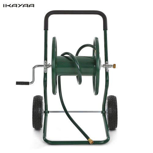 Very nice hose reel. Handles 100 ft no problem. Works real well. Don't forget to put washer in hose to reel so it doesn't leak. I only gave it 4 stars because it was missing nuts,bolts,and washers. We picked them up from Lowes. Really need to work on packaging.