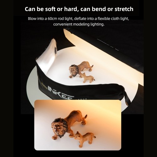 【Inflatable Photography Light Stick】Inflate the light stick to a 60cm rod light for easy shaping and diffused lighting, or deflate it into a flexible cloth light for versatile use. With support for both electric and manual inflation, it can be easily set up and folded for storage by simply pressing the air nozzle.