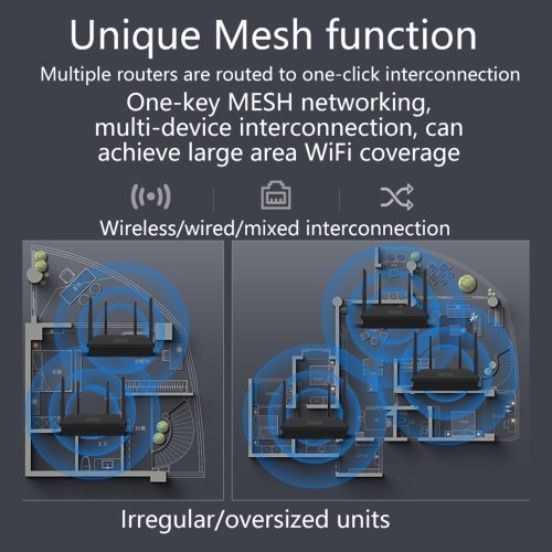 Dual-Band Connectivity: Offers 2.4G 300Mbps + 5G 866.7Mbps wireless access speeds, covering a wide range of high-density environments with robust performance.