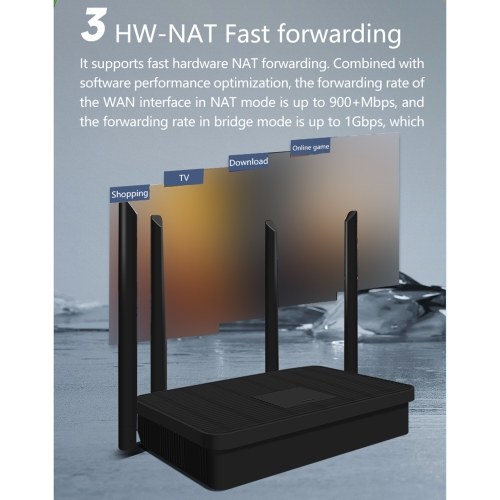 Gigabit Ethernet Ports: Equipped with 10/100/1000Mbps adaptive Ethernet ports for HNAT hardware acceleration, ensuring fast data forwarding up to 900+Mbps.