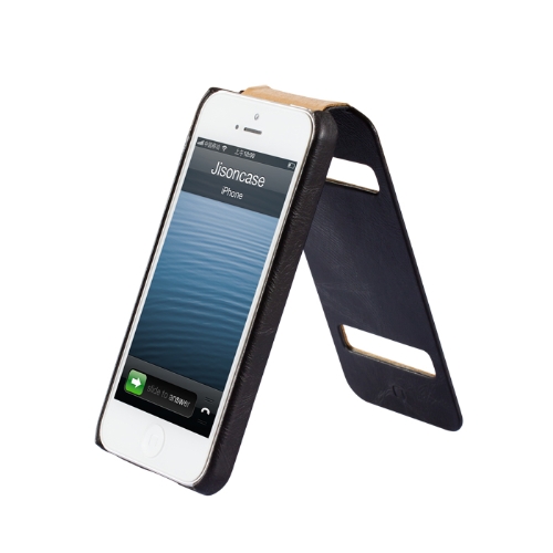 Jisoncase Genuine Leather Flip Protective Case Cover Vintage for Apple iPhone 5 Black