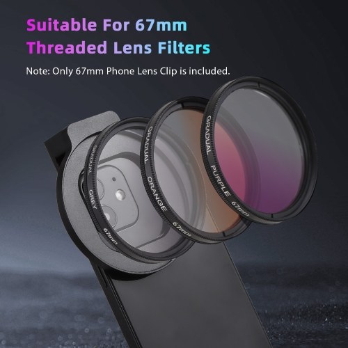 【Wide Compatibility】Thread mount design, this phone filter mount is compatible with ND, CPL, UV and other filters in 67mm filters.