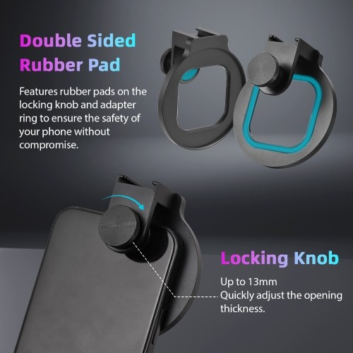 【Full Metal Material】The phone filter clamp is made of aluminum alloy material, sturdy and anti-rust. With rubber pad to prevent scratch to your smartphone.