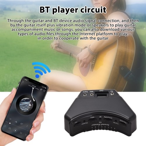 【BT Connectivity】: This wooden guitar soundhole pickup features a BT playback circuit that connects your guitar to any BT device. This allows you to play backing tracks or songs directly from your guitar, either in support mode or through a speaker. You can also download and play any type of audio file from the internet to accompany your guitar performance.