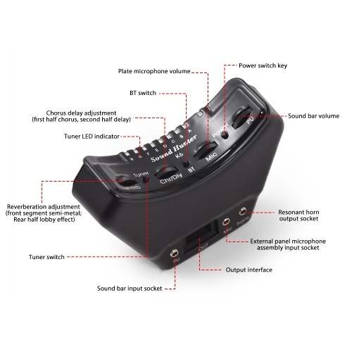 【Guitar Resonance Function】: The flat speaker attached inside the guitar vibrates the guitar body to produce sound, achieving DSP sound effects and enhancing the resonance volume of the guitar body. When connected via BT, the guitar body can also be used as a small speaker. This product also has a powerful automatic feedback suppression function, so you don't have to worry about feedback during use.