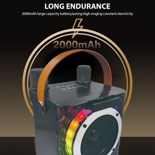 [Dual Wireless Microphones] : This karaoke machine comes with two wireless microphones, enabling duet performances without the hassle of tangled wires. The microphones have a battery capacity of 400mA, ensuring long-lasting use.