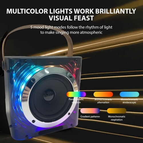 [Portable Design with Atmosphere Light] : This karaoke machine is compact and portable, with a built-in 2000mA battery and a handy carrying strap, making it perfect for outdoor activities like camping and picnics. The RGB atmosphere light adds a fun and festive touch to your singing sessions.