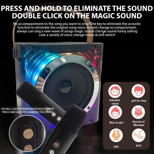 [3D Surround Sound & Voice Conversion] : Our karaoke machine offers a 3D stereo surround sound for a more immersive singing and listening experience. It also features 5 voice conversion modes, allowing you to experiment with different singing styles and have more fun.